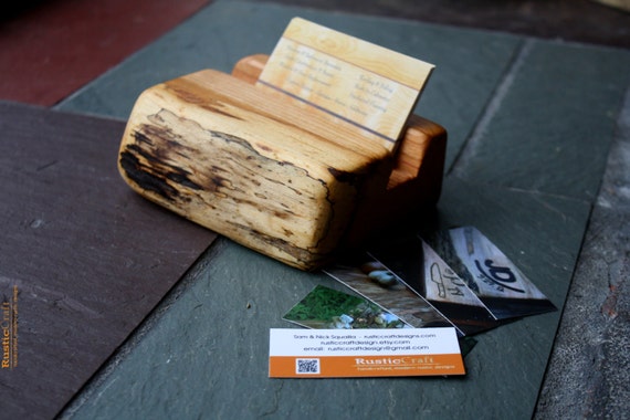 Wood Business Card Holder Rustic Live Edges Unique Office Etsy Israel